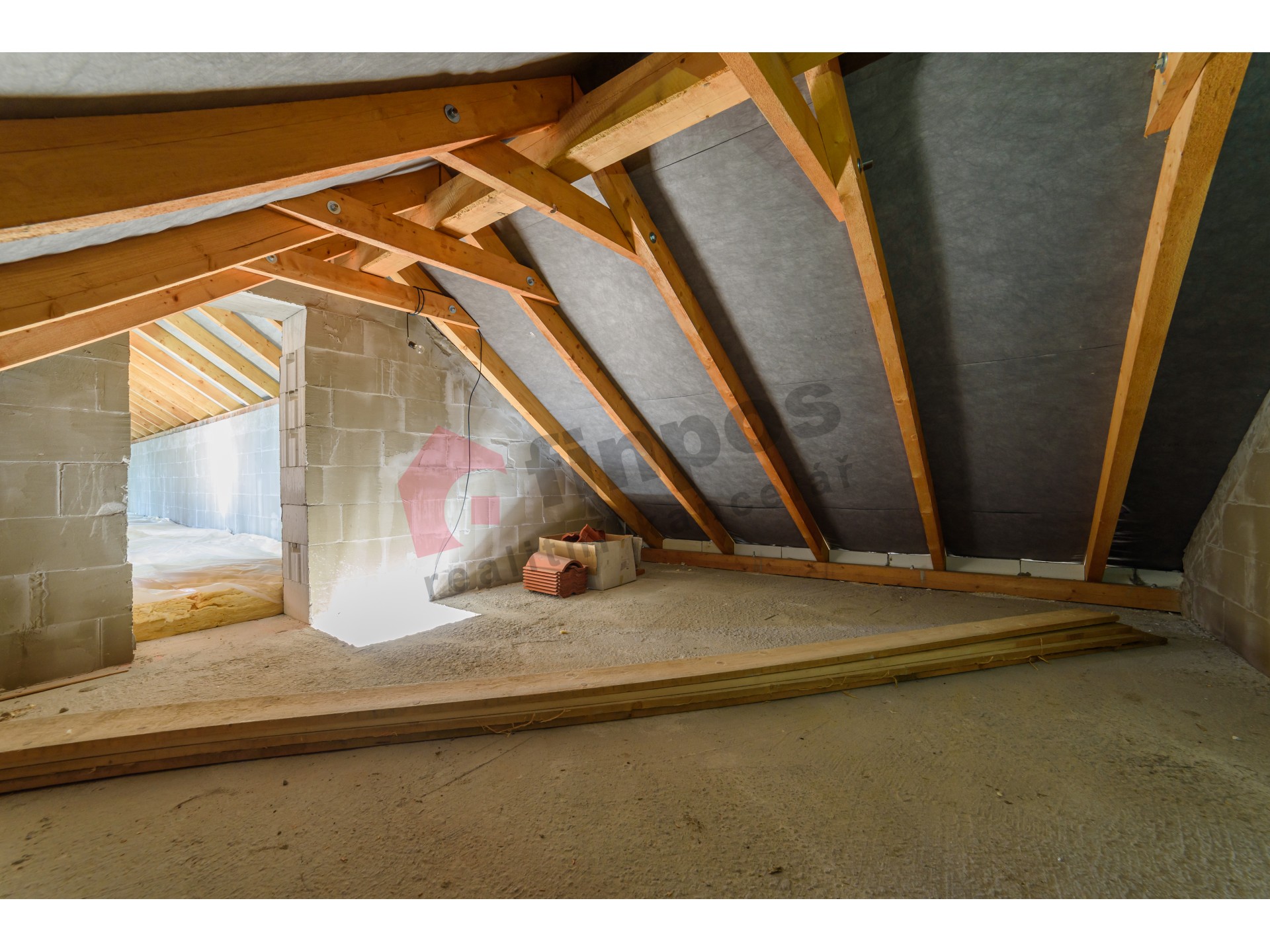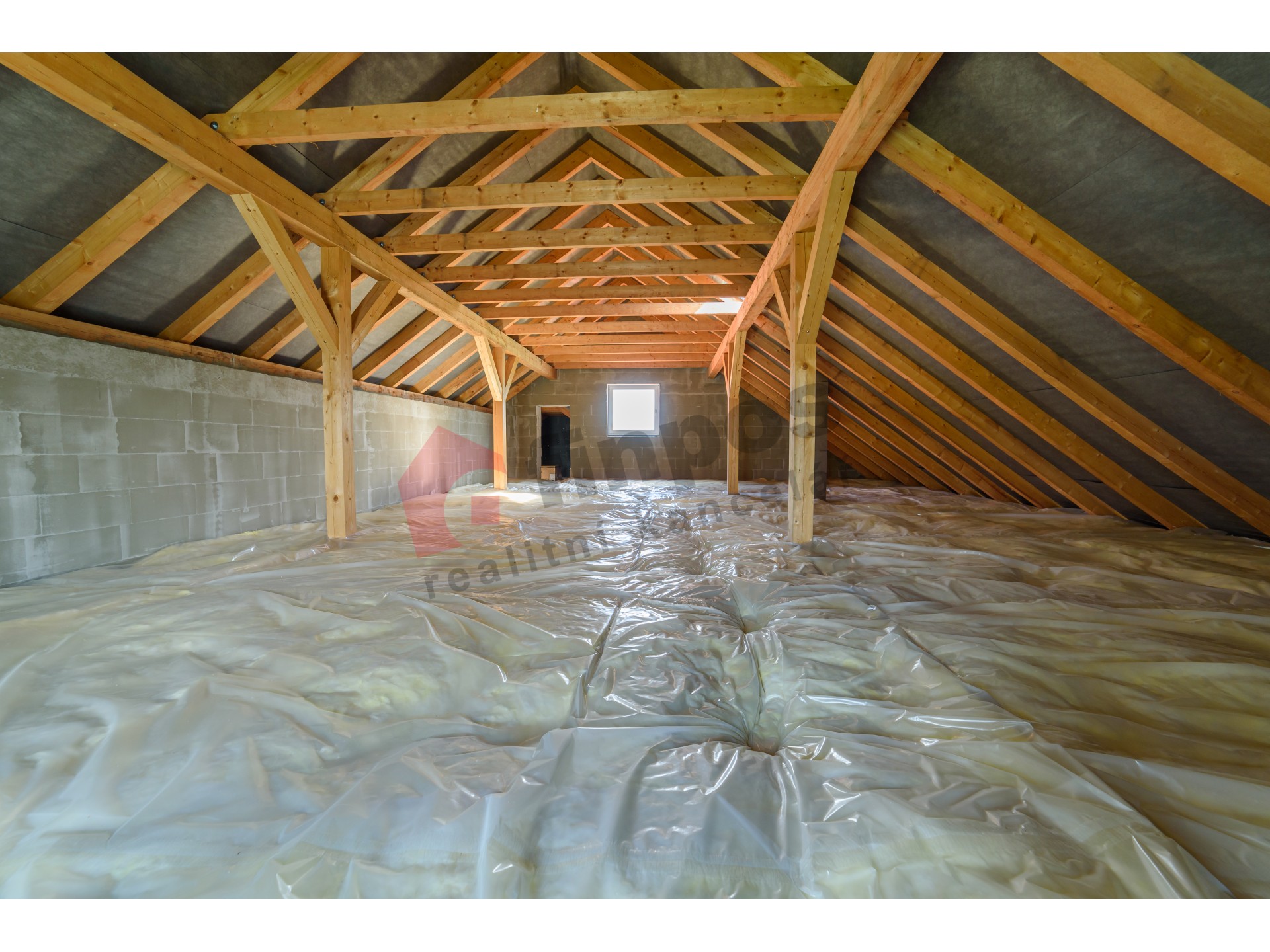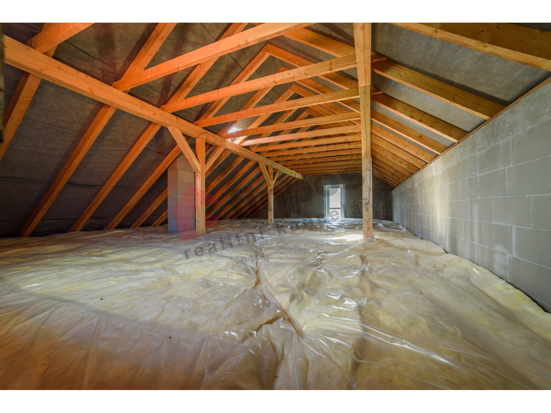 V 2.NP otevřená podlahová plocha podkroví 111m2 s možností další místnosti, o velikosti užitné plochy 20m2 přímo nad garáží. Velká výhoda tohoto druhého podlaží je, že může být zařazeno do obytné části a to v případě ohlášení stavebního záměru pro obytné podkroví. Za účelem možnosti zařazení obytného podkroví, je zde z jedné strany štítu domu francouzské okno a to pro využití samostatného vchodu do podkroví, druhý vchod do podkroví je v garáži. Do 2NP jsou vyvedené přípojky elektřiny, potřebné elektro průchodky, přípojky topení a vody. Dům je napojen na obecní kanalizaci a vodovodní přípojku.