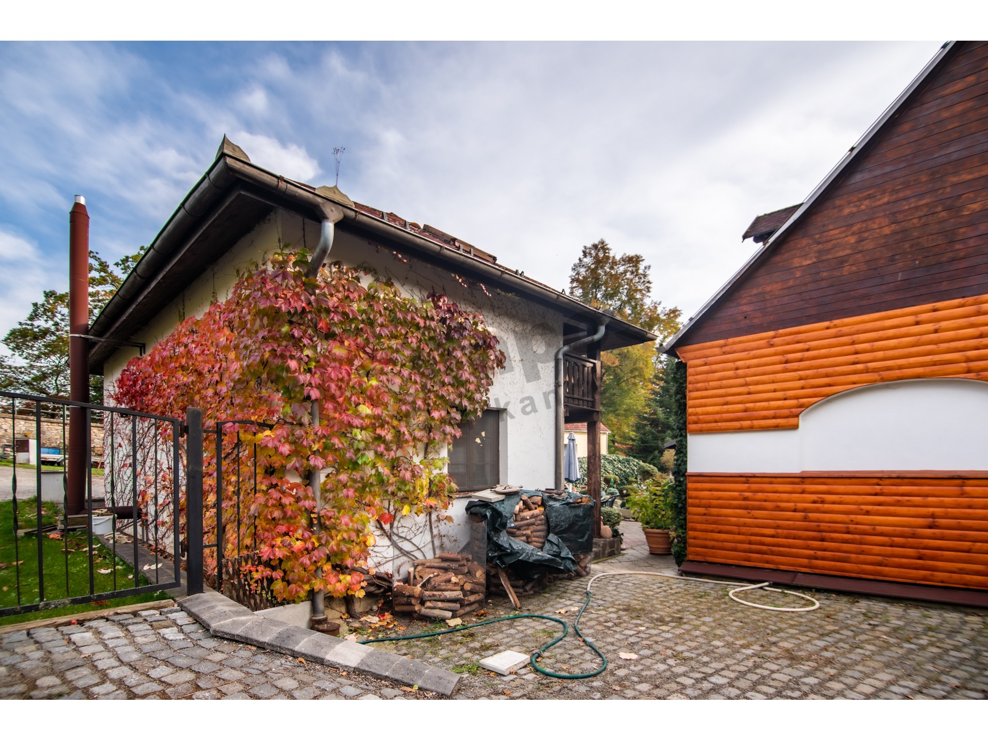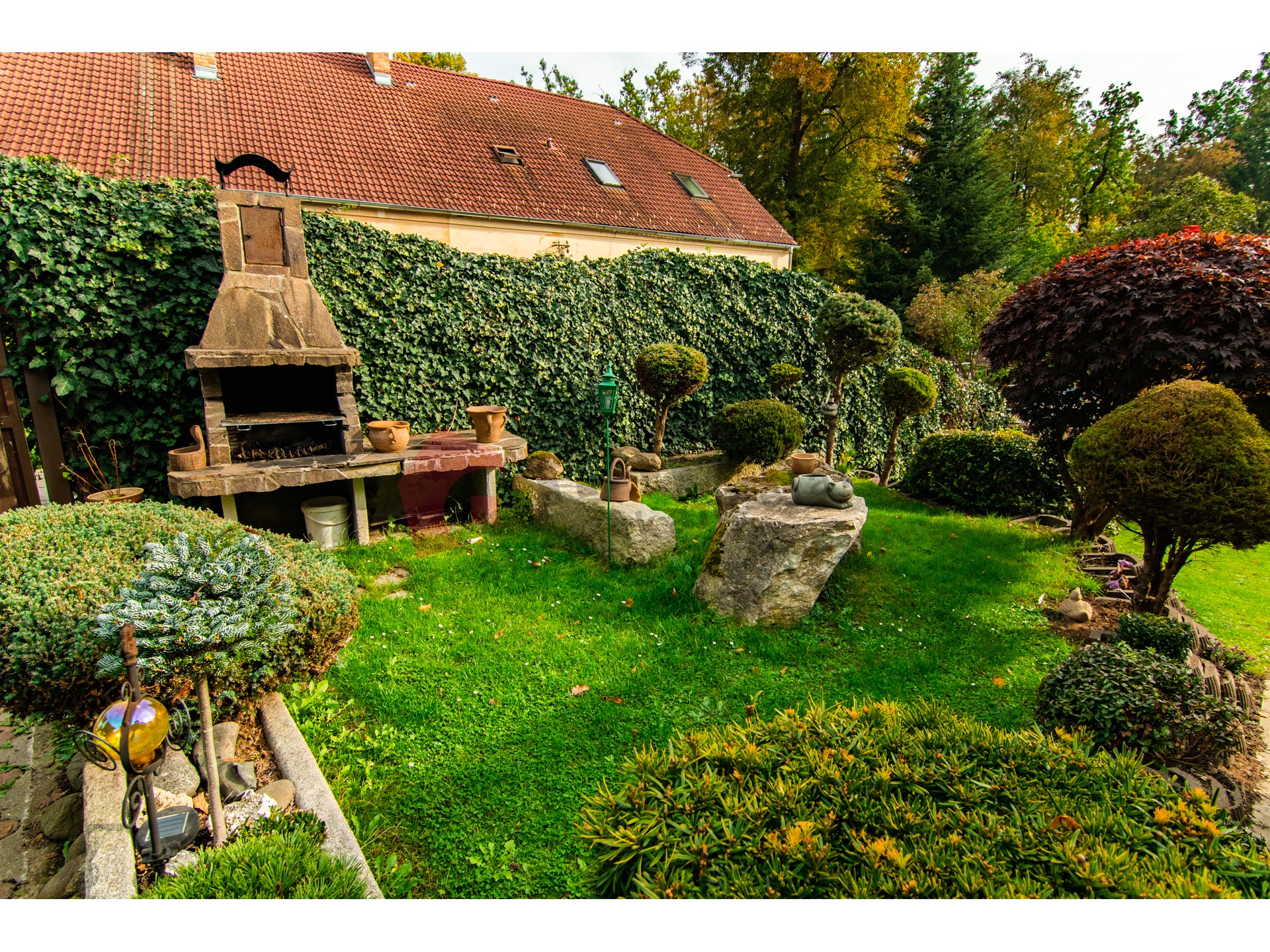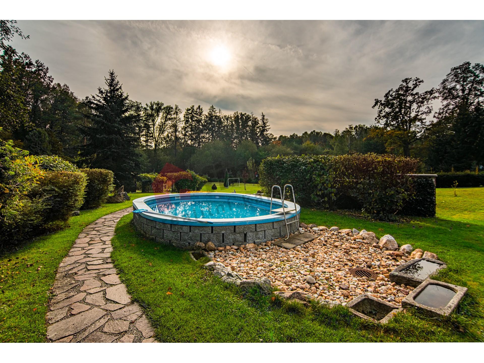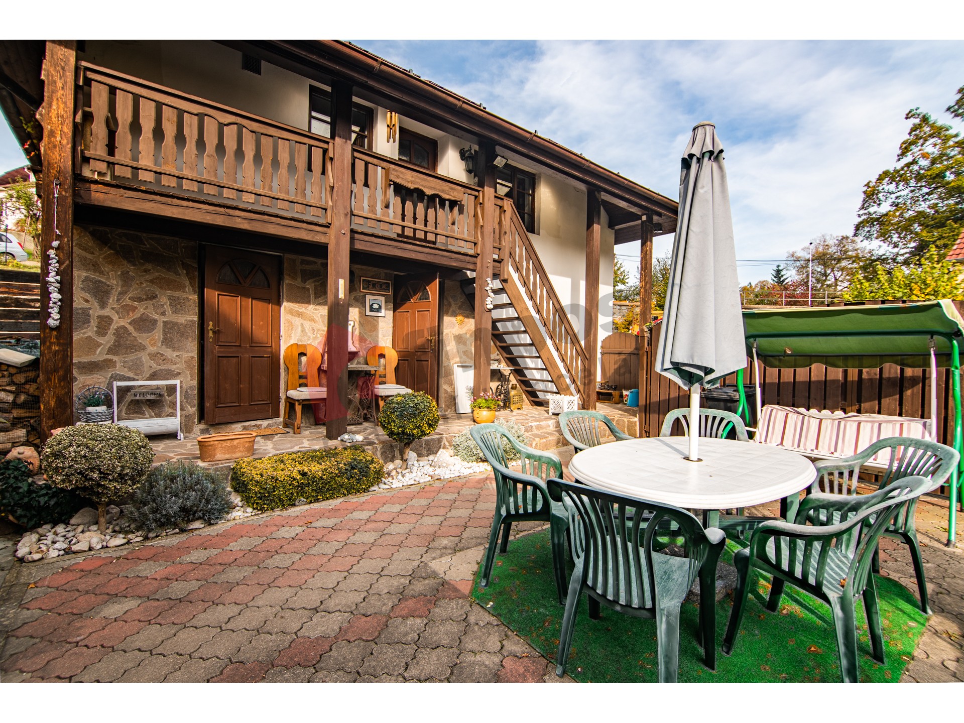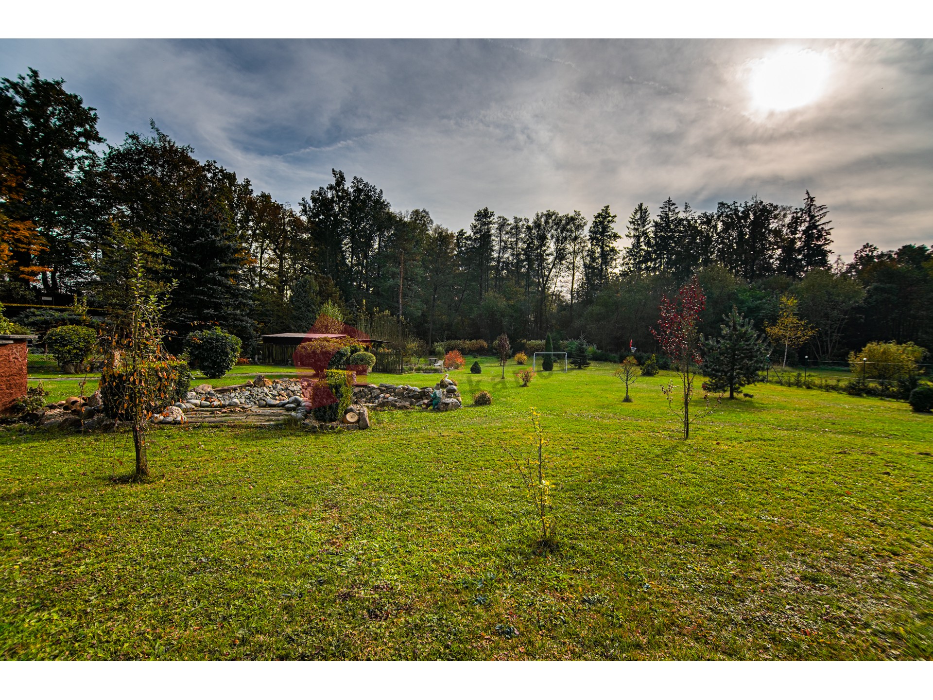 Pozemky náležející k nemovitosti mají celkovou rozlohu 3196 m2. Hlavní rodinný dům s dispozicí 3+1 s obytnou plochou 170 m2, k němuž byl v rámci rekonstrukce v r. 1997 přistaven další samostatný obytný objekt 1+1 s obytnou plochou 98,9 m2, ve kterém se nachází v přízemí společenská místnost s barem a v druhém nadzemním podlaží je vystavěna garsonka. Tento samostatný objekt je z části podsklepený. Obě budovy mají střešní krytinu z kanadského šindele a pevného dřevěného krovu.