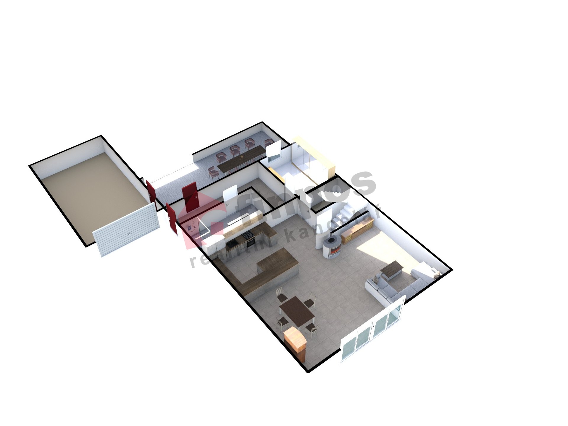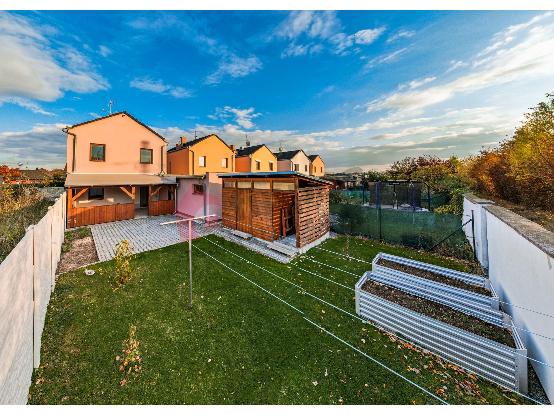 Celková podlahová plocha domu je 120m2, garáž 29m2, zahrada 142m2, pergola 17m2, předzahrádka 33m2, kůlna 13,5m2, soukromý vjezd do garáže 45m2 – který je zastřešen pro další vozidlo a zajištuje místo ke krytému parkování.